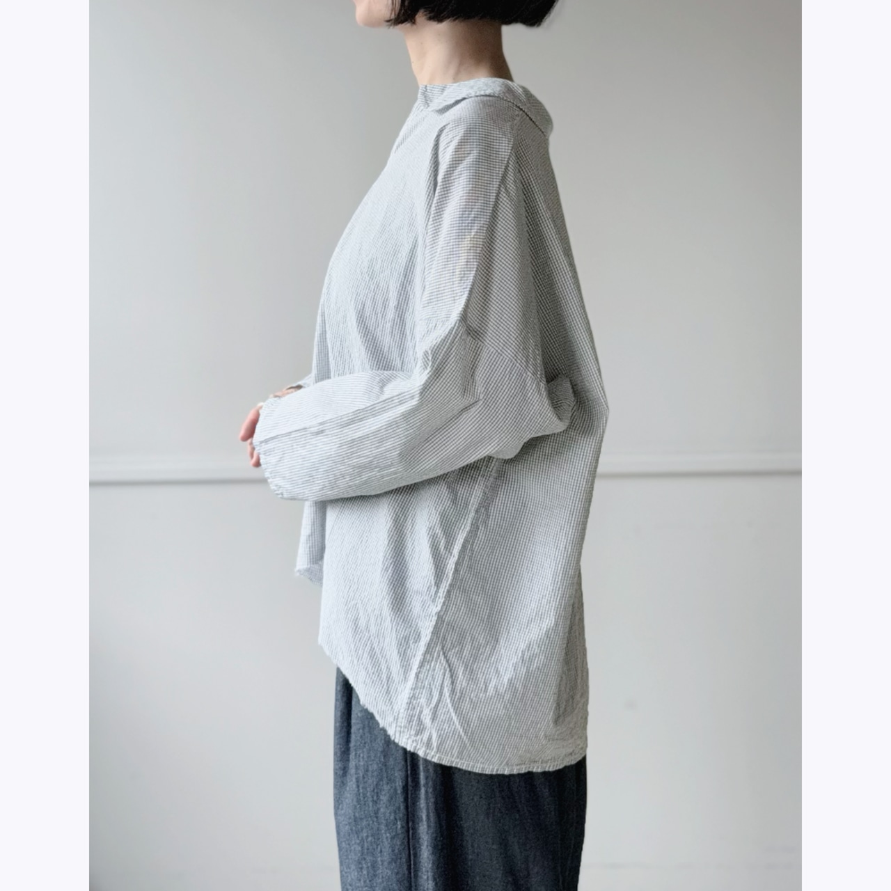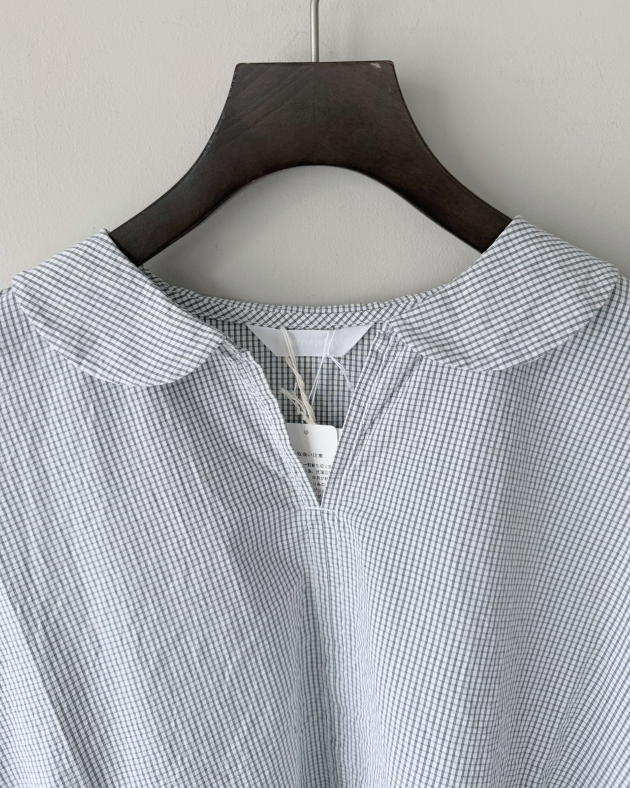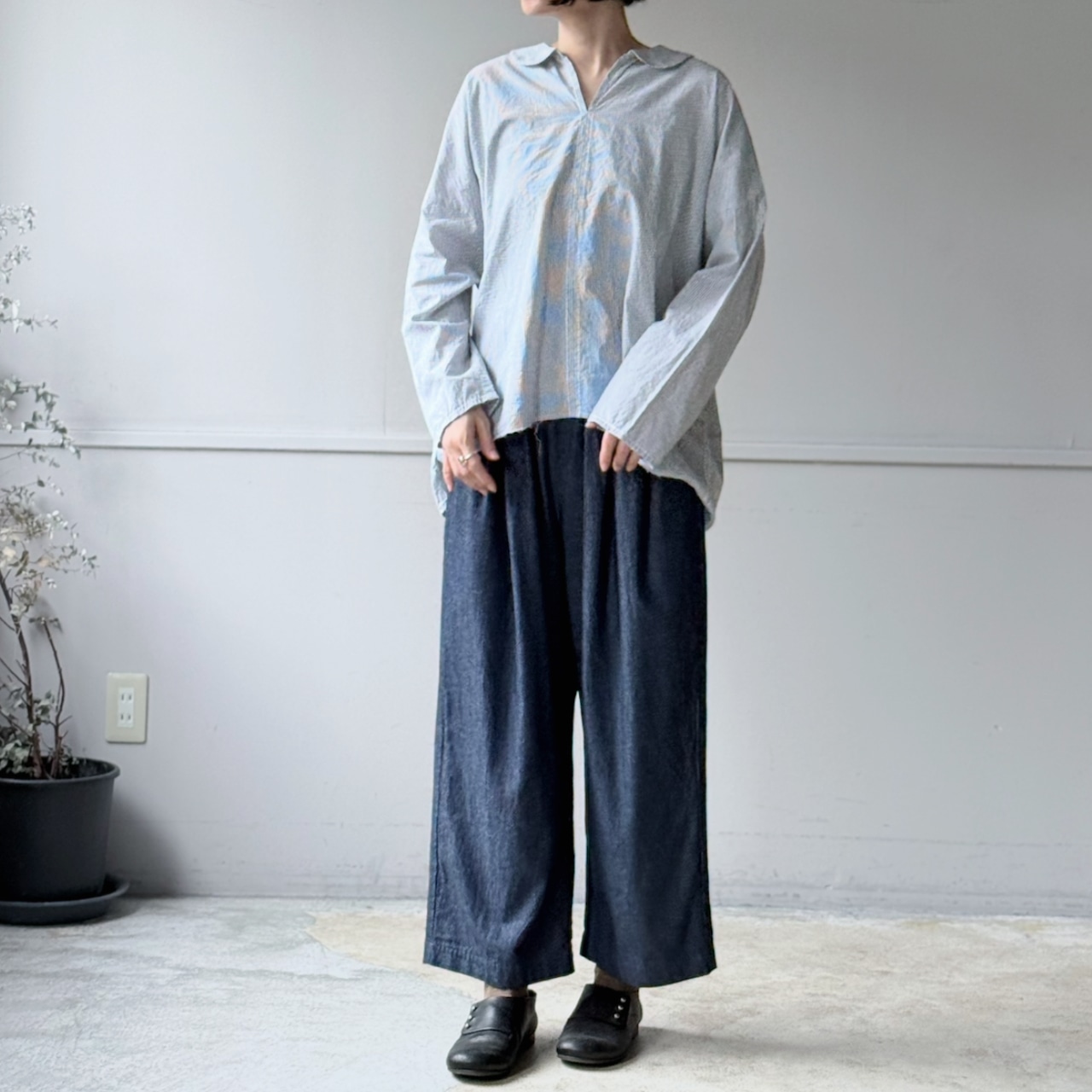 送料無料【homspun】ハイカウントクロス丸襟プルオーバーブラウス