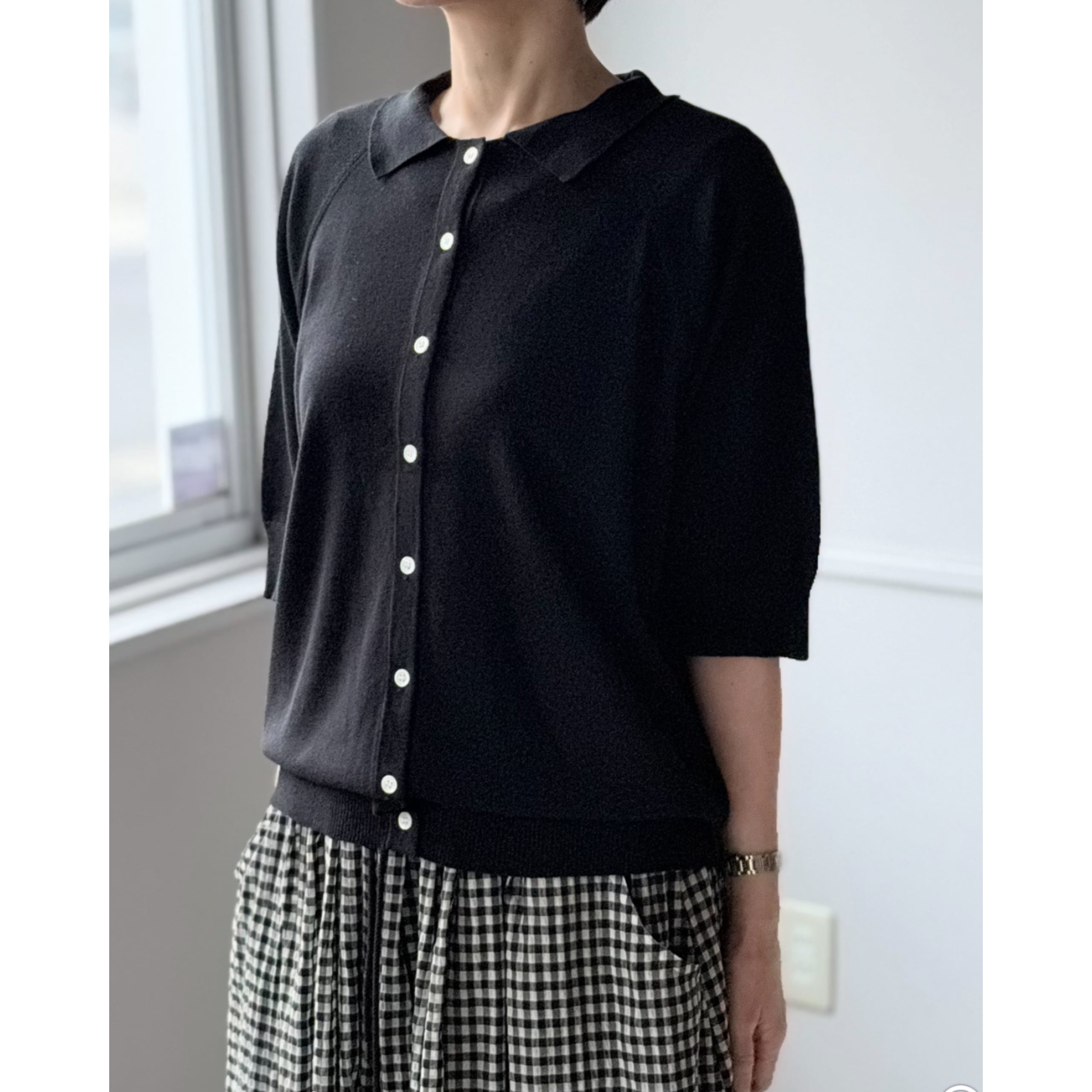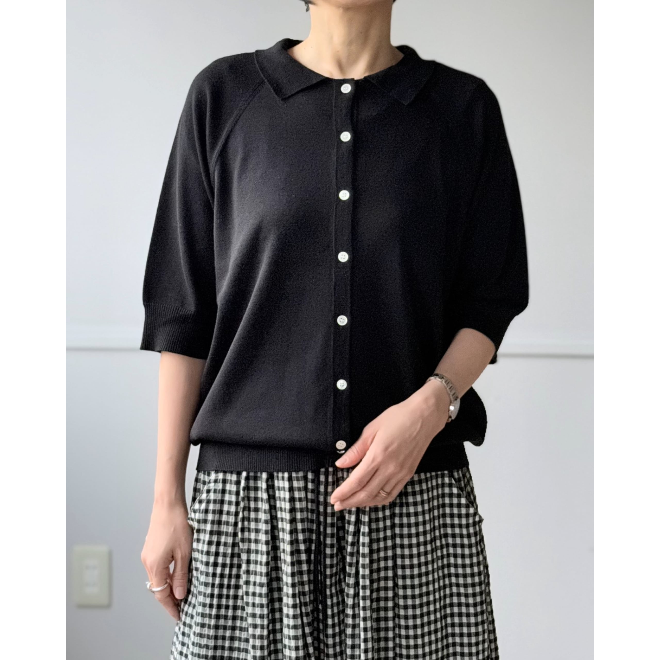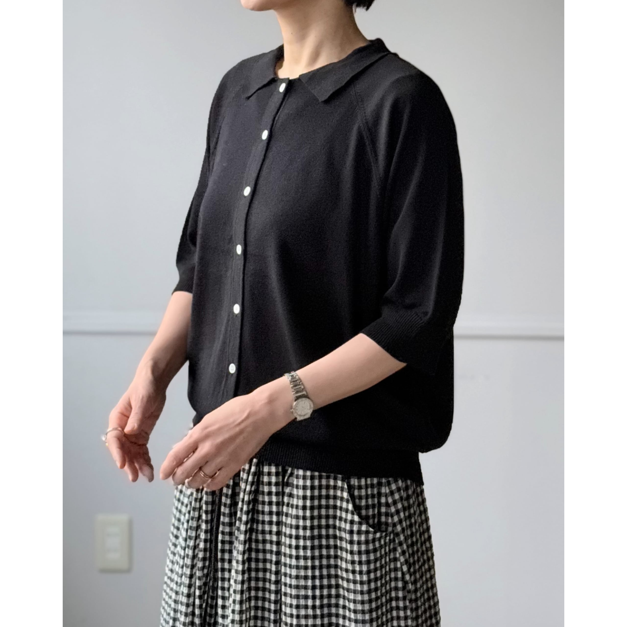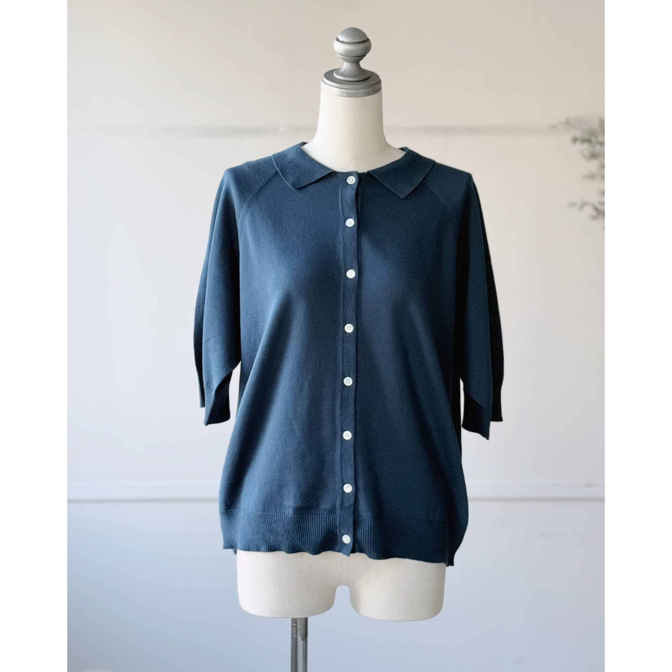 六分袖襟付きカーディガン