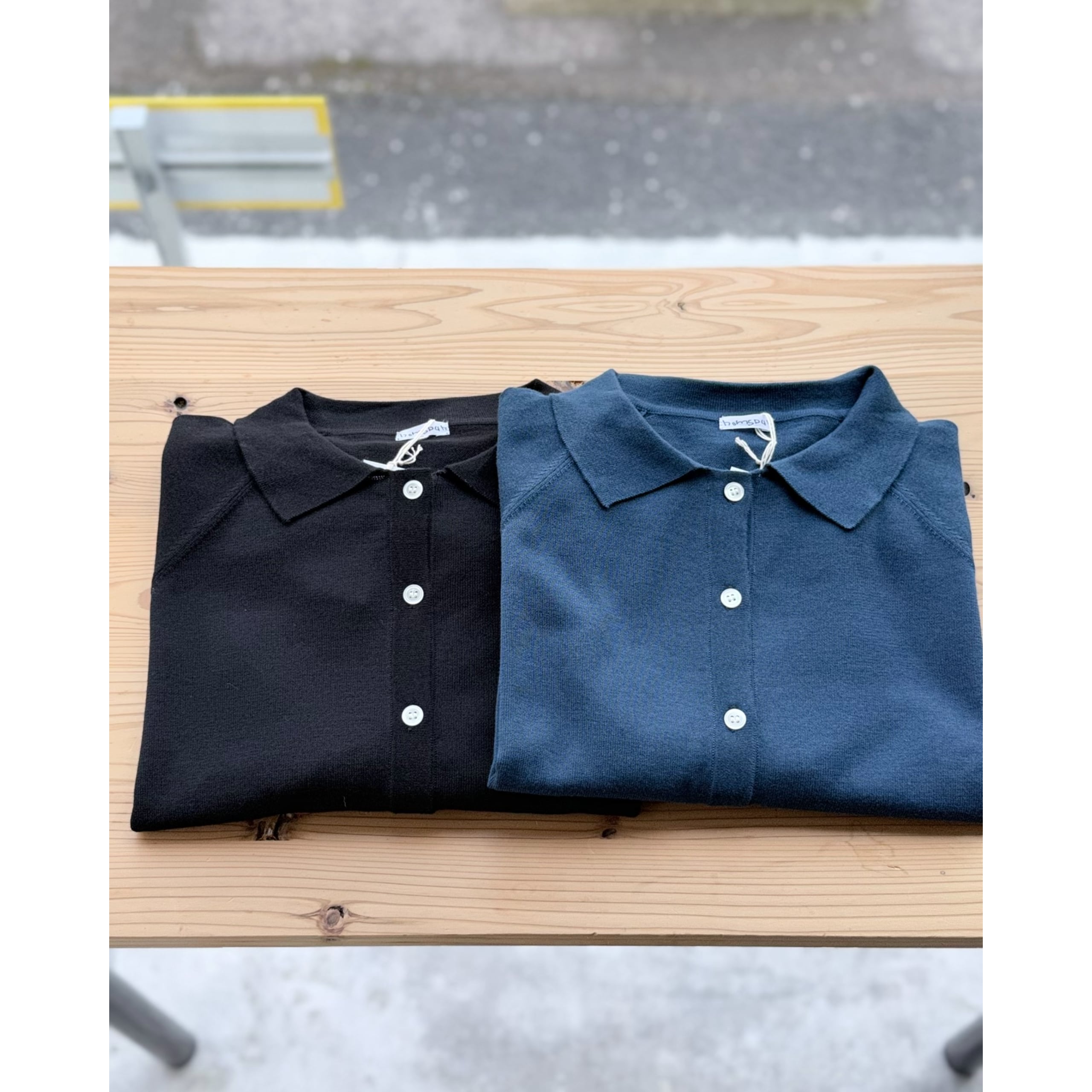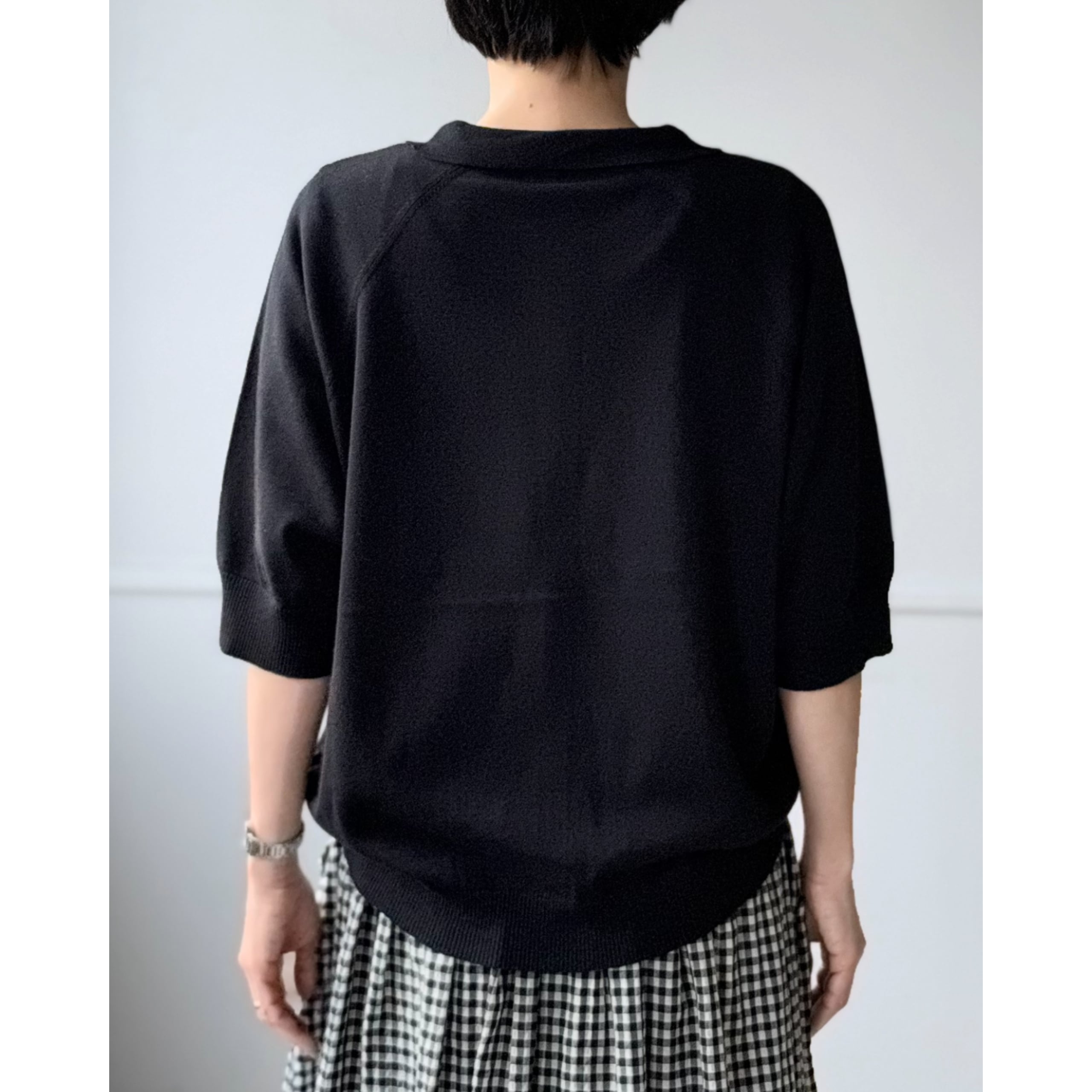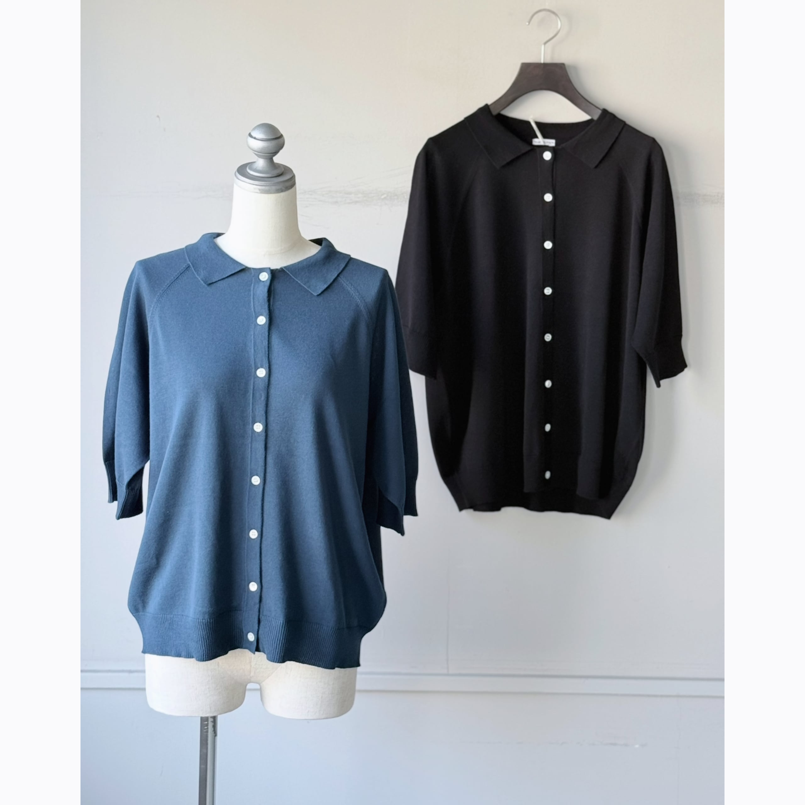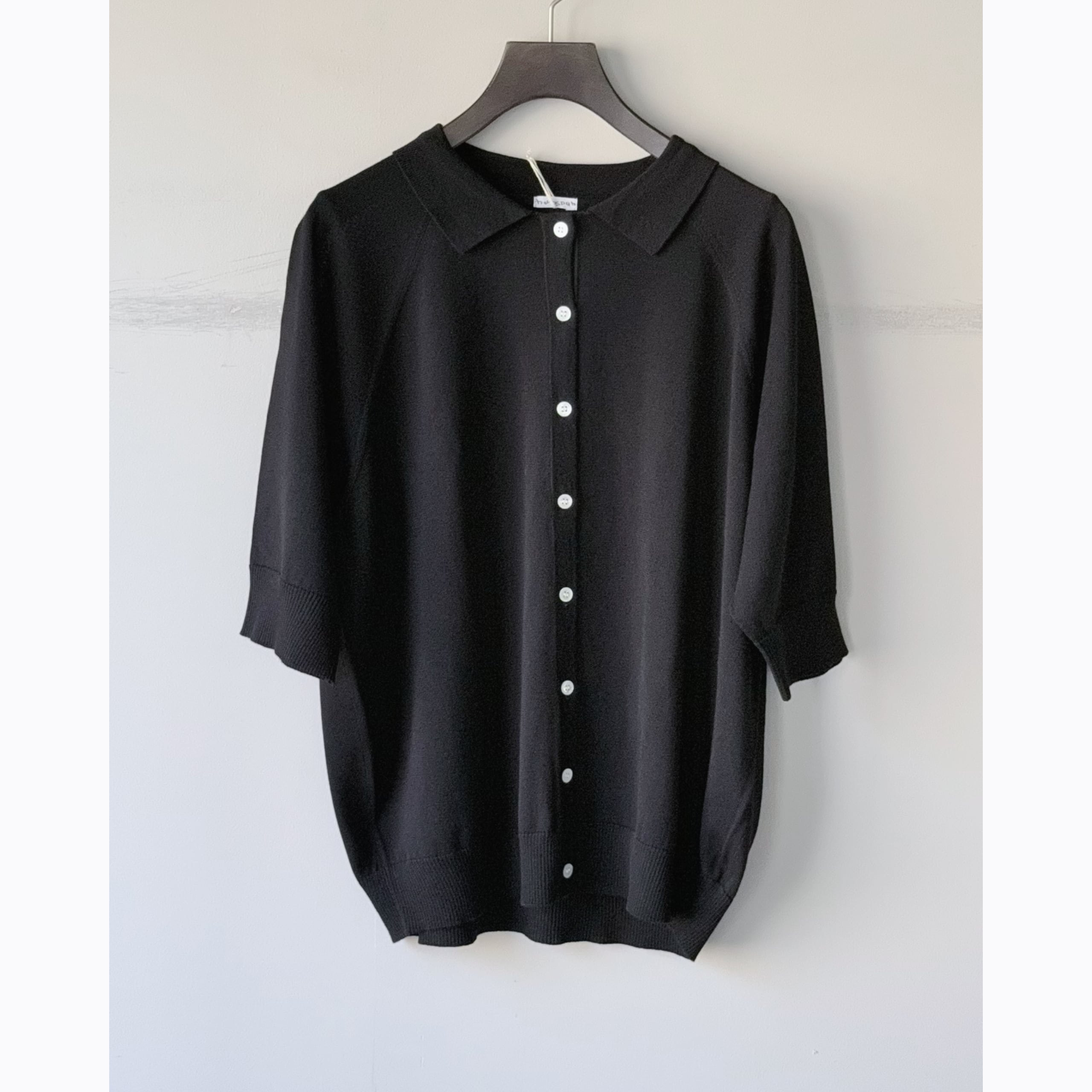 六分袖襟付きカーディガン